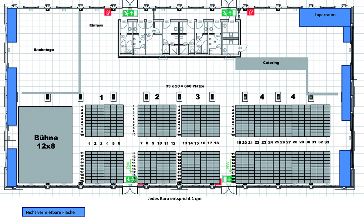 Ein besonderes Highlight ist die maximale Flexibilität der Bestuhlung: Ob Reihenbestuhlung, Gala-Setting oder freie Flächen für kreative Inszenierungen – die Halle lässt sich individuell an jede Veranstaltung anpassen und eröffnet nahezu unbegrenzte Nutzungsmöglichkeiten.