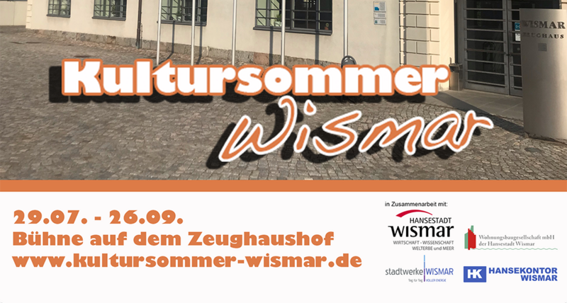 Bis Ende September veranstalten wir in Zusammenarbeit mit der Hansestadt Wismar den Kultursommer Wismar auf dem Zughaus-Innenhof.