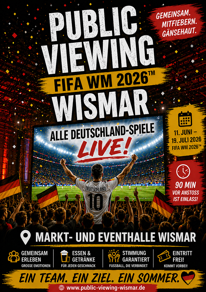 Public Viewing in der Markt- und Eventhalle Wismar: Deutschland startet gegen Curaçao in die WM 2026
